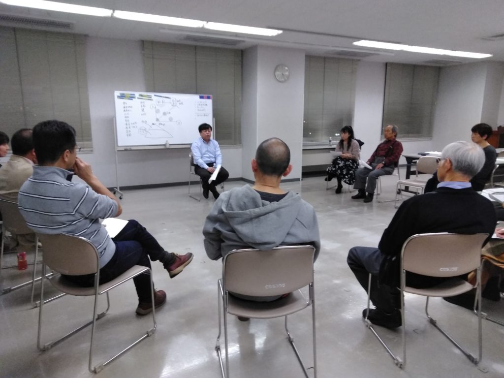 ★ 参加者は、町議会議員、町内会長兼民生委員、高校教師、街つくりグループから3人、あるキリスト教信者のご夫婦、助産師、重度心身障害者ホーム職員、療養中の若い女性、それに私の14人です。