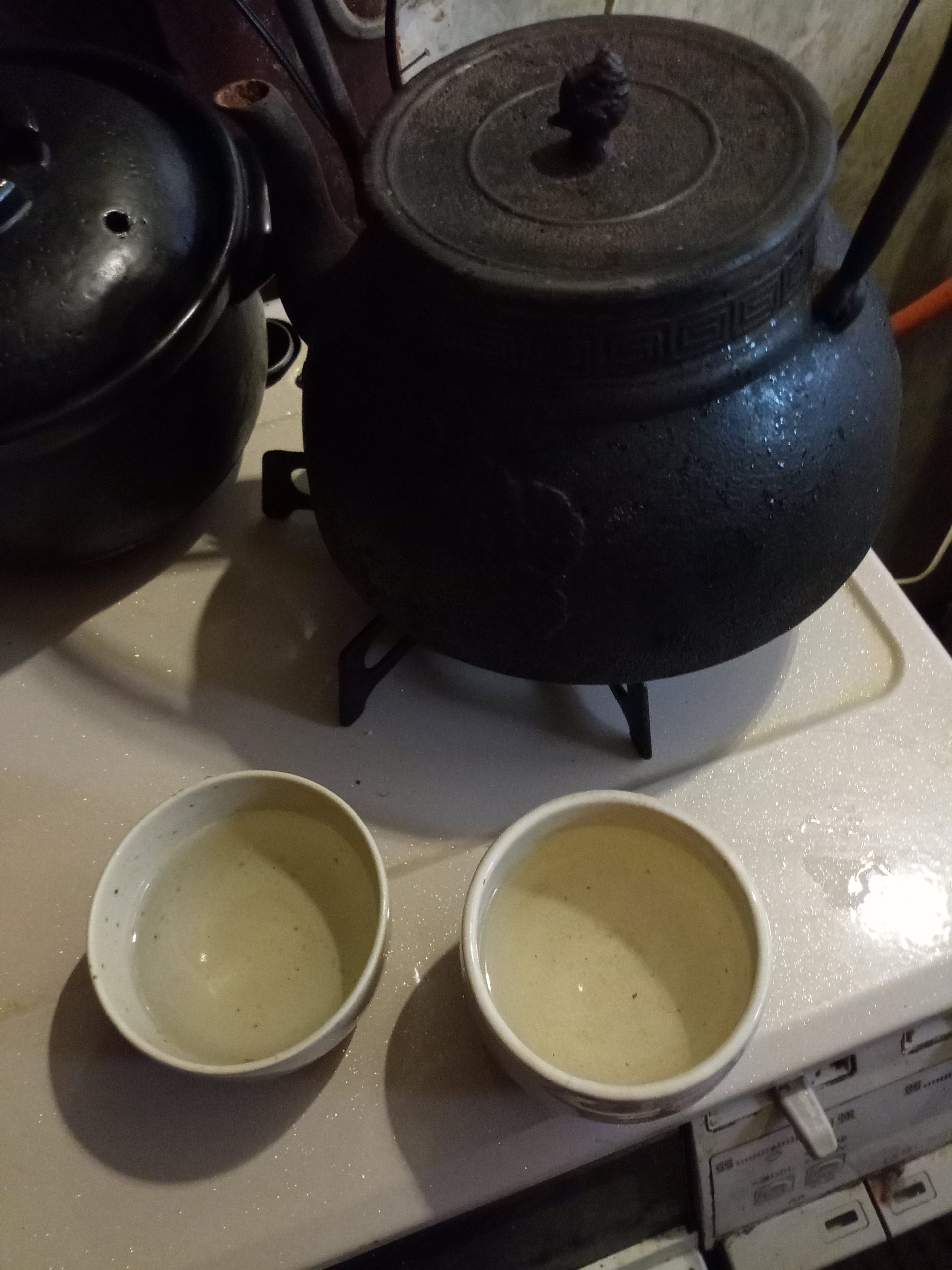 白湯は、歯を磨いている間に鉄瓶で沸かして、仏壇兼神棚にお供えしたあと自分のをゆっくり飲みます。茶碗はお気に入りのを愛用しています。胸からおなかに暖かいお湯がしみわったていきます。気持ちいい!