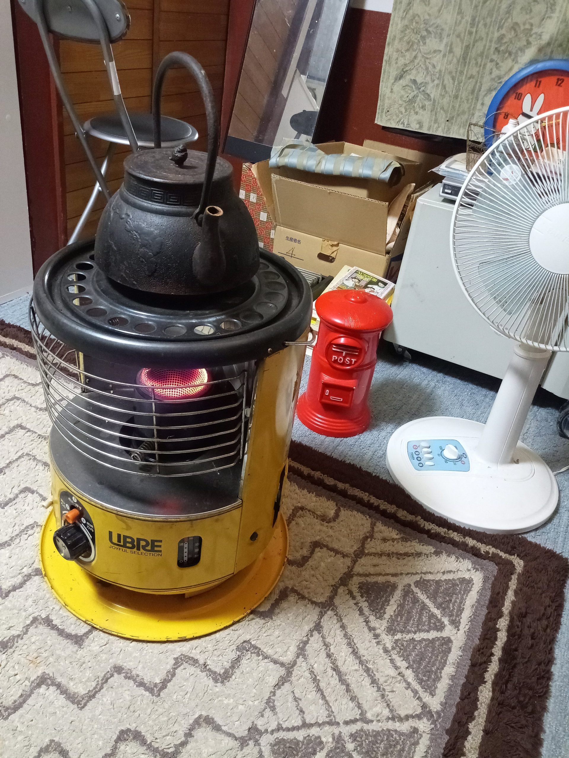 朝は10~12度、日中もパソコンに向かって座っていると足元が寒くてストーブが欲しいです。毛糸のカーディガンを羽織っていても寒くなってきました、ストーブつけますね。 (扇風機はもう片付けました )