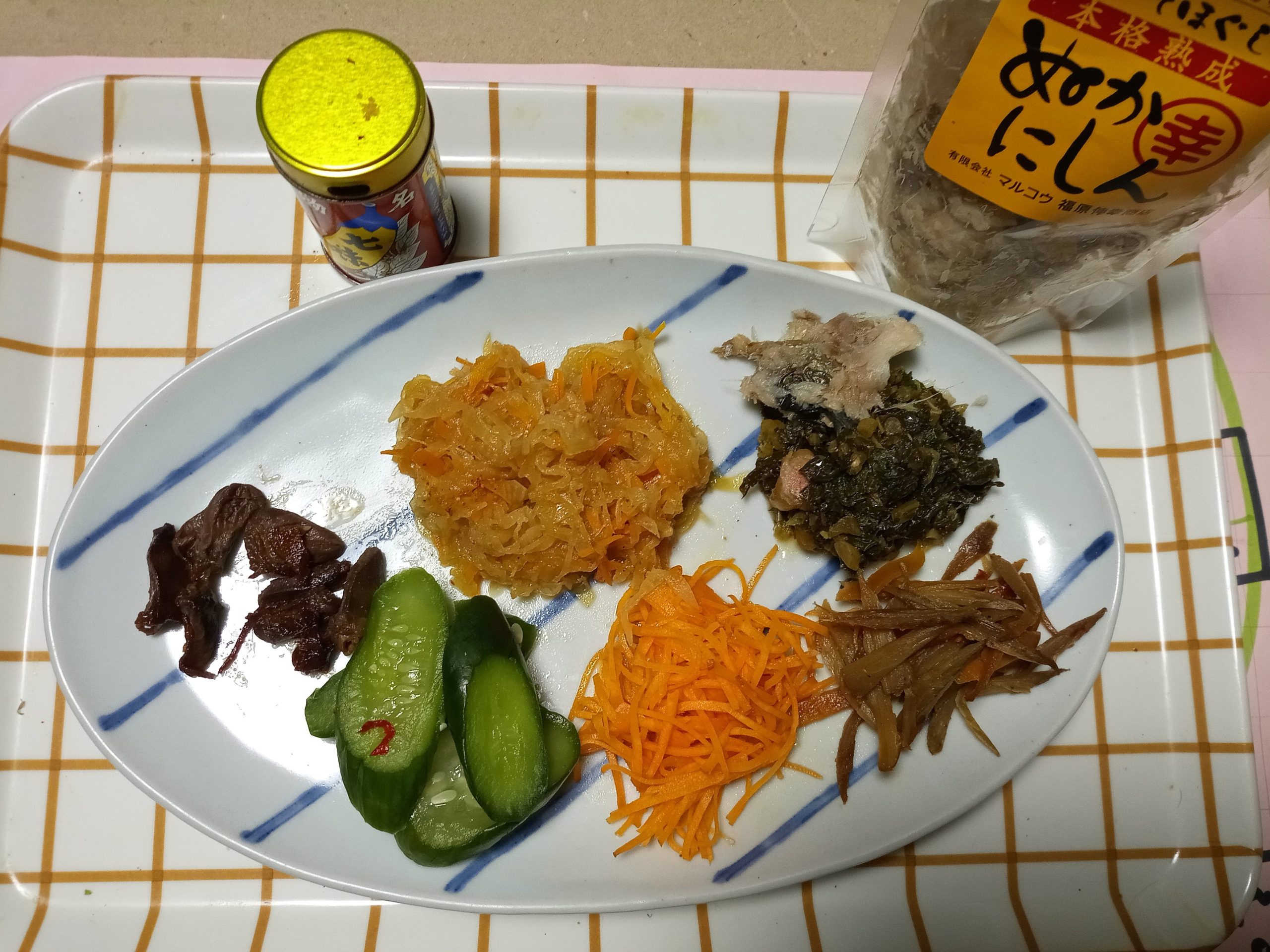 こちらはお盆に入っていつのまにかできていたお菜のコレクションです。