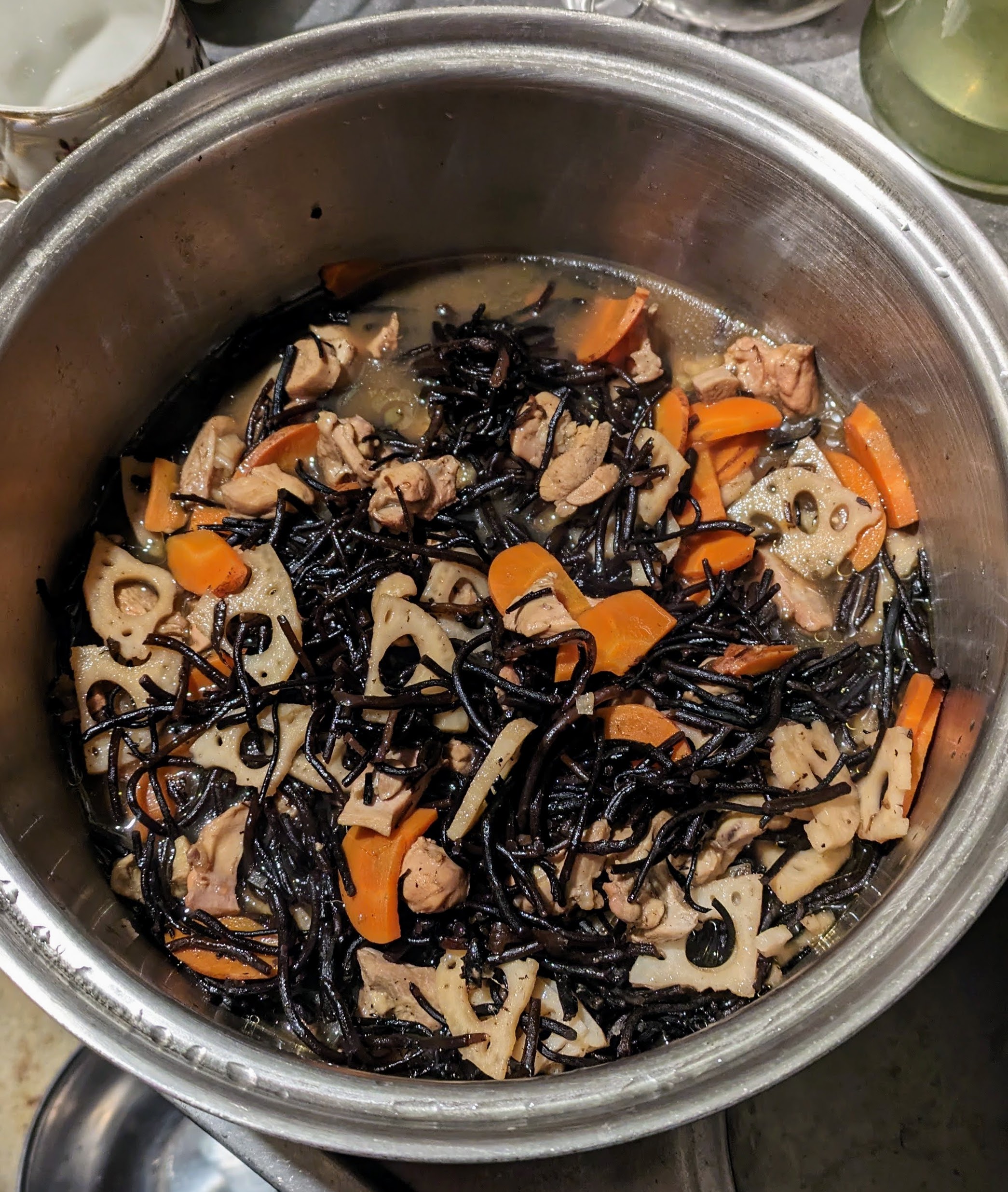⤵ ひじきれんこんができました。鶏肉入り